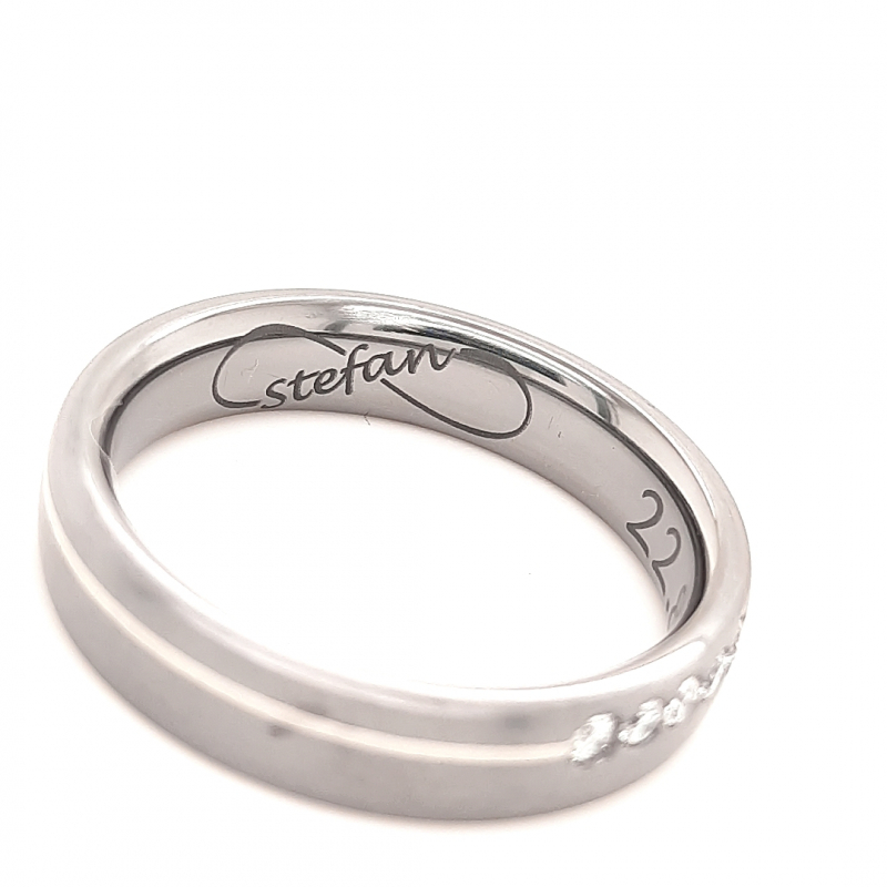 Mit der Aufnahme dieses Artikels in den Warenkorb haben Sie die Möglichkeit, ein Schmuckstück aus unseren Kollektionen oder ein von Ihnen eingeliefertes Schmuckstück mit der Lasergravur eines Texts in Standardschriftarten und mit Grafiken Ihrer Wahl zu versehen. Ringinnengravuren, Ringaußengravuren und Flächengravuren sind gleichermaßen möglich.