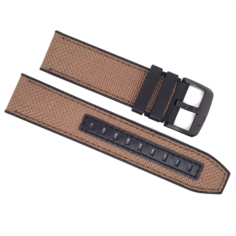 Uhrarmband aus schwarzem Kautschuk, Oberteil mit Gewebe beige,